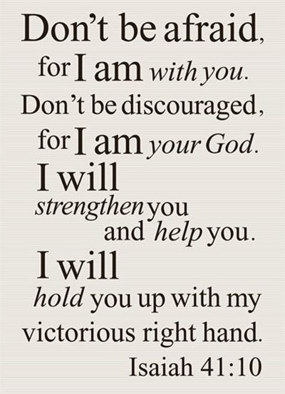 Don't be discouraged for I am your God, I will strengthen you and help you, I will hold you up with My victorious right hand Isaiah 41 v 10
