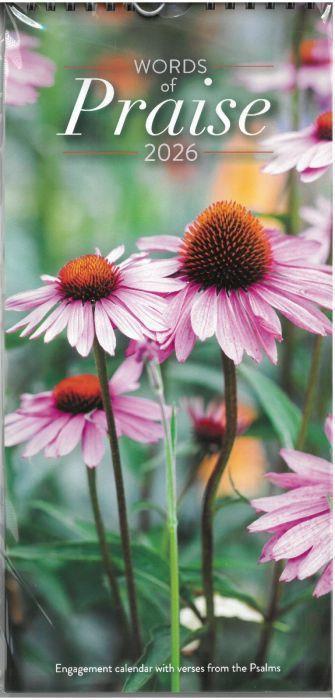 A slim format Wall Calendar pairing vibrant photography with selected words of praise. 137x290mm Wire bound with hanger. Engagement format with space to write. UK notable dates and bank holidays Designed and printed in the UK